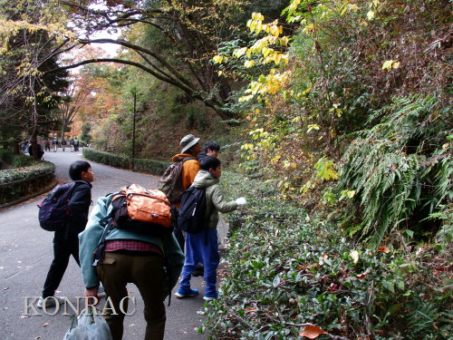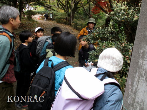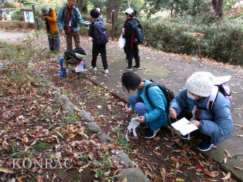 東口の日本民家園前に出てから、崖地の植物を観察しました。