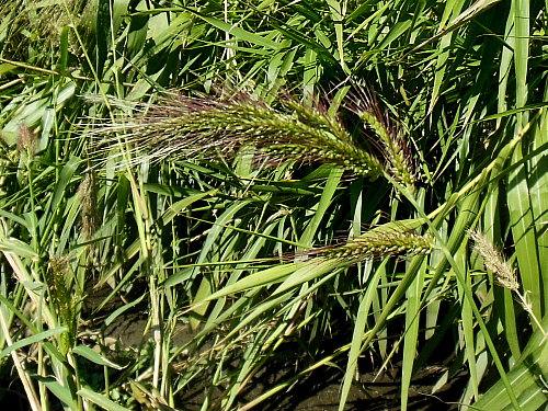 イヌビエの変種のケイヌビエという1年草がありました。見慣れたイヌビエが無精ひげを生やしたように見えます。