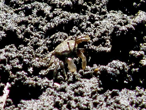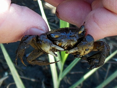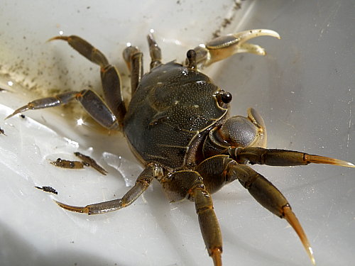 高水位時に水に浸かり、水位が下がった時にできた水溜りにも、アベハゼ、カニ類、ハイイロゲンゴロウなど、様々な生物が見られました。