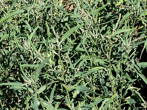 ホソバハマアカザがありました。 神植誌2001によると「県内では多摩川河口、三浦半島の塩湿地に見られる。」とあります。