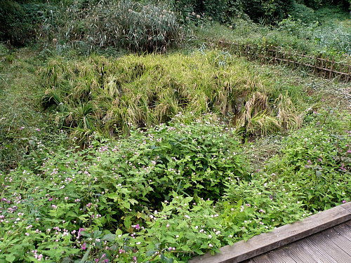 種籾採取 日時 2013/10/3(木) 13:00〜14:00 晴 場所 生田緑地 田圃 参加者 岩田臣生 種籾を採取しました。今回は130本採りました。 田圃の畦にアカバナが残されて、咲いていました。