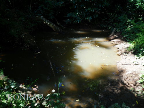 谷戸の水辺の状態観察など 日 時)9月2日(火) 9:00〜11:30 晴 場 所)生田緑地 谷戸 活動者)岩田臣生 ![]() 今夏は降雨が少なく、生田緑地の谷戸の水辺は、各所で水涸れが始まり、殆どの水辺が涸れてしまいました。 今日は、これからの水辺保全の活動計画を検討するために、谷戸の水辺の状態を観察する活動を行いました。 (01)ハンノキ林上の池 先月末、8/28(木)に泥上げの活動を行い、水深を深くしたつもりでしたが、アメリカザリガニ駆除の網籠は半分泥に埋まっていて、 アメリカザリガニは入っていませんでした。 この池に入る水は、現在は、タラッ、タラッと垂れているだけの水なので、池の水が増えることはなく、減るばかりだと思われます。 かつては、ヤブヤンマが訪れていた池なのですが、この日は、オオシオカラトンボが観られました。 水は、デッキの基礎部分を越えることができずに溜まった状態になっています。 ![]() (02)木道沿いの水溜まり ヤマコウバシがあって、その周囲が湿地の状態になっていたので、今春、水溜まりをつくってみましたが、その水は涸れていました。 明確な水源は無いと思われます。 (03)ハンノキ林西の池 昔、北部公園事務所の職員がつくったというトンボ池が消えかけていたので、その堤体を補強して、生きもののための池として管理している池です。 オニヤンマ、ヤマサナエ、ホトケドジョウ、カワニナなどが利用しています。 堤体に開いた穴に水が抜けて水位が下がっていたので、8/21(木)に、泥上げを行い、多数のホトケドジョウを確認し、水深を深くして、水温を低く保とうと思い、堤体部の穴を塞ぎました。 このため、一時的に、池からオーバーフローする水が止まっていましたが、堤体を越えて、流量は少ないながら、水は流れ出していました。 この辺りは、ゲンジボタル成虫の出現ポイントでもあります。 水量は非常に少ないのですが、涸れてはいないので、この周辺では、水辺の生きものが生き残っていてくれるかも知れないと思いました。 ![]() ![]() (04)ハンノキ林中央の木道付近 ハンノキ林を流れる2本の水流は、木道近くでは涸れて、水面が見えませんでした。 水流の保全活動では、木道部分で、少し水を堰き止めることを考えていたのですが、樹木の根が絡み合っていて、諦めていました。 これを、改めて、検討する必要があると思いました。 ![]() ![]() (05)萌芽更新地区北端を源頭部とする支谷戸 ここの斜面は、ホタルの蛹化場所だと思っていましたし、昨年も、今年も、この支谷戸で、ホタルが群舞していました。 ホタルの棲息地としては、この辺りが、一番のポイントではないかと考えています。 今回は、ミヤマシラスゲのヤブを掻き分けて、支谷戸の中に入ってみました。 すると、大半の流域には湿った土が見えているだけでしたが、早春の活動時に掘った水溜まりの辺りには、非常に薄くですが、水が残っていました。 また、ホソミイトトンボが数匹、観察できました。 ![]() ![]() ![]() (06)ハンノキ林北側の木道沿い この木道沿いは、やはり、ハンノキ林内の水流がぶつかる所ですが、いずれの水流も涸れていました。 この木道沿いに、しっかりした堤体をつくって、林内から出てくる水を一旦止めて、湿地地区に導入することを考えたいと思いました。 ![]() ![]() (07)竹林下谷戸 狩野川台風により崩れた土砂が堆積しているようですが、ゲンジボタルが棲息できる水流をつくるつもりで活動していました。 この谷戸は、積極的な公園的利用を考える必要は無いと思いますので、管理し易い小規模な溜め池をつくることを検討したいと思いました。 (08)谷戸左岸水流 谷戸左岸水流については、階段状の水流に変えること、更に、上の田圃地区に入った所に、管理し易い溜め池を検討したいと思いました。 (09)谷戸右岸水流 右岸水流についても、渇水期に水溜まりが残る、生きものに優しい階段状の水流にしたいと思いました。 上の田圃地区より下流域は、下の田圃を除いて、全域、水が涸れていました。 下の田圃は、不思議なのですが、少ないながら水がありました。 この1ヶ月、次第に涸れていく水辺を見てきましたので、改めて、谷戸の水辺の再生・保全について検討しようと思っています。 |