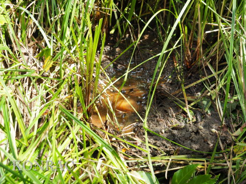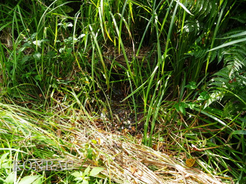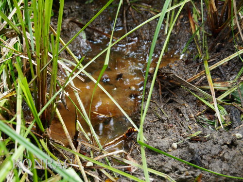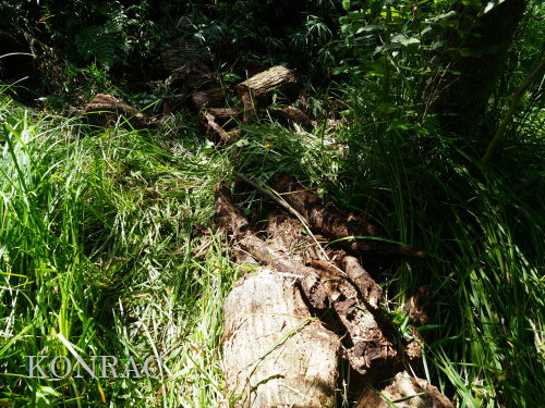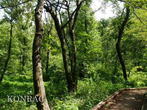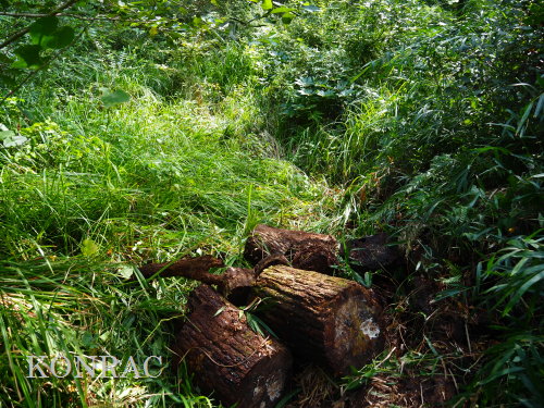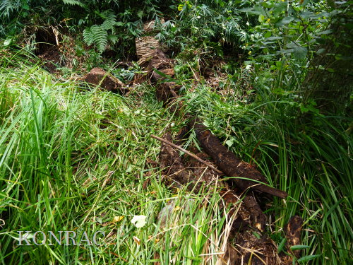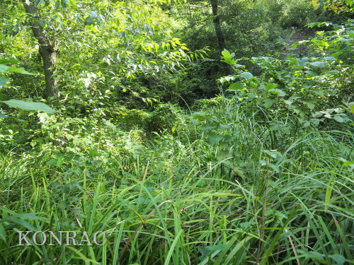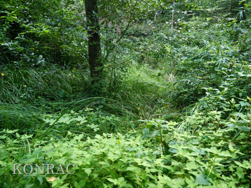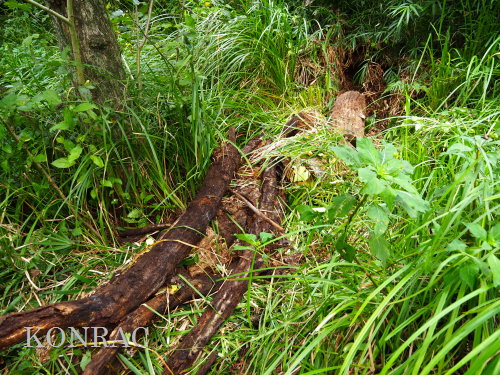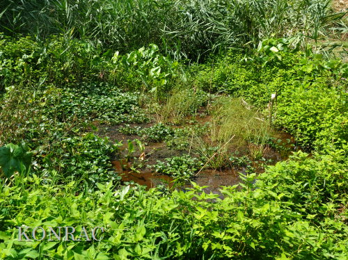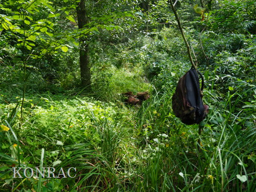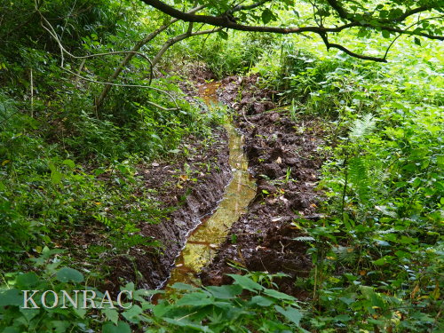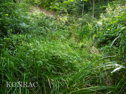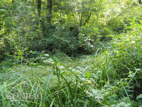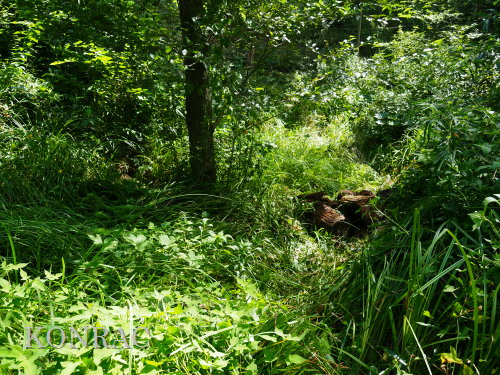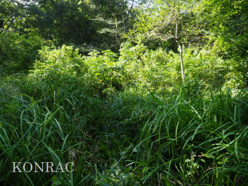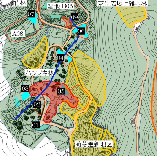 ハンノキ林の水辺保全 日 時)9月11日(木) 9:00〜12:00 晴 場 所)生田緑地 ハンノキ林地区 活動者)岩田臣生、田村成美 環境省の特定植物群落に指定されている生田緑地ハンノキ林の植生管理計画には、ハンノキ林の樹林としての保全ばかりでなく、 林床の水辺に棲息する生物の保護のための水辺保全も合わせて行うこととして、当調査団を植生管理主体に定めています。 今夏の高い気温と少ない降雨量に対して、水辺の水面を保全するべく努力しつつ、少し長期戦での対応策も考えながら、水辺保全活動を行っています。 ハンノキ林は一つの谷底という区域として扱ってきましたが、9/9(火)の活動では、水域としては、右岸(東側)と左岸(西側)に分かれていることを認識させられました。 そして、左岸(西側)は、ハンノキ林西の池が、最奥部の溜め池として、水源の役割を果たしていて、水は涸れていません。 しかし、右岸(東側)は、ハンノキ林上の池の水が少なくなり、最奥部の水源としての役割は果たしていなかったため、水涸れが起こっていました。 今回は、次図の活動場所図にある(05)に入って、状態を観察し、何をすべきか、何ができるかを考えて、最奥部の池をつくることにしました。 ![]() (図)9/11(木)の活動場所図(青線は水域の境界) ハンノキ林 アクセスは、ハンノキ林上の池からオーバーフローした水を追うようにヤブコギをして、合流点(05)に入りました。 ![]() ![]() ![]() ハンノキ林東地区の下の谷部は、萌芽更新地区北端部が一番奥に見えます。 その谷に入りました。 ![]() ![]() ![]() 9/6(土)の里山倶楽部のハンノキ林東地区の活動中に、斜面下の、水面が消えている谷底に入って、 水が染み出しそうな場所に試し掘りをしたので、そこを調べました。 すると、斜面からは、水が染み出していました。 ![]() ミヤマシラスゲの繁茂する谷底部では、水が溜まって、オオスズメバチが吸水に来ていました。 ![]() ![]() ![]() 量は少なくても、水が染み出しているということに安心しました。 地表に水が見えていなくても、染み出してくる水があったので、若しかすると、大事な生きものが生き抜いてくれているかも知れません。 狭い谷で、その中央に、太いハンノキがありましたので、このハンノキの少し上側に堰堤をつくって、小さな溜め池をつくることを考えました。 この両側の斜面は、ナラ枯れ大径木を伐採して、その伐採材を斜面裾部に置いていました。 この伐採材を引っ張り出して、堰堤を造ろうとする場所に並べてみました。 伐採材は、腐植が進んでいましたが、まだ沢山残っているはずです。 オオスズメバチが飛来して、偵察を始めました。 これからは、度々、吸水にも、偵察にも、来るでしょう。 作業は、静かに進めた方が良さそうです。 今回は、土を寄せることは行いませんでしたが、活動の方向については決心できました。 ![]() ![]() ![]() ![]() ![]() ![]() ハンノキ林西の池付近の木道に出て、休憩しました。 ![]() 湿地地区 左岸(西側)の水流は順調で、湿地地区への水路には水面ができていました。 ![]() 上の田圃地区 上の田圃地区には、少ないながら、水はあり、穂が黄金色になってきました。 ![]() 下の田圃地区 水面は回復していました。 ![]() |
