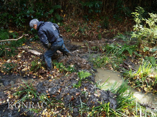 野鳥の森の水流の水辺保全 日 時)11月27日(木) 9:00〜12:00 曇 場 所)生田緑地 野鳥の森の水辺(B01) 活動者)岩田臣生、伊澤高行 この日は、野鳥の森の水辺(B01)の泥上げを行いました。