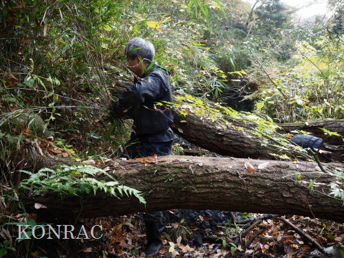 下端域になると、水流であったことを想像させる状態ではなく、陸地化していました。 繁茂していたはずのビナンカズラは全くありませんでした。 何本もの伐倒木が散乱し、歩くのも容易ではありません。 ナラ枯れ木などを伐採して、放り込んでいたようです。 生田緑地は急傾斜地が多いので、伐倒したままにせざるを得ない場所もありますが、 ここは平坦地なので、適度な大きさに玉切りし、適切に積むことは可能なはずです。 行政は、2013年にマネジメント会議を設置し、生田緑地の植生管理計画の策定・運用を始めたわけですから、 ナラ枯れ伐採を業者に発注する時には、植生管理計画を遵守した活動にさせる必要があると思います。 園路から見えなければ、放り込んでおけばいいということではなく、雑木林の育成に配慮した置き方を考えていただきたいと思います。
