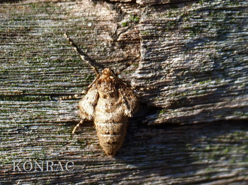 ピクニック広場東階段を上ってから、手摺を調べたら、この日も、フユシャク(メス)が見つかりました。