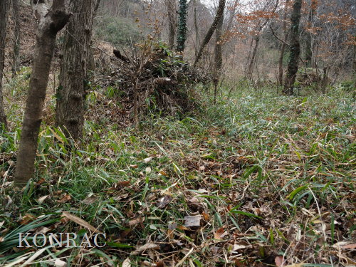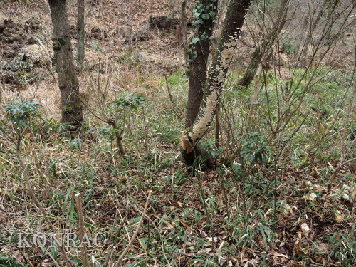 昨夜の降雨のお陰で、辺りの地表は湿って、春を感じさせてくれるようになりました。 ハンノキ林の下草刈りは5回目になりますが、私の刈り方は雑なので、今まで刈った範囲を見ても、草刈りが済んでいるようには見えません。 相変わらず、ミヤマカンスゲの大株が繁茂していますので、ジロボウエンゴサクは発芽できないかも知れません。 主な目的は、アズマネザサ、オカウコギ、ノイバラ、フジなどのツル植物がつくっていたヤブを解消し、実生低木などを低くすることなどです。 また、落枝や、夏期に刈って置いてあったミヤマシラスゲなどの片付けも行いました。 東側の水流は涸れていましたが、西側の水流は開放水面が保たれていました。