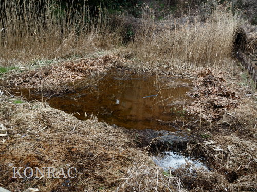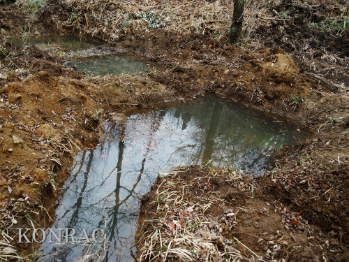 一昨日、2/24(火)に掘り直した水溜まり02は、深く水が溜まっていました。