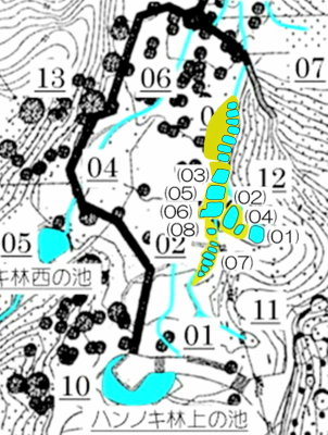 ハンノキ林上の池からの小さな水流を、いくつかの水溜まりを経て、水溜まり08に繋いで、更に水溜まり06に繋ぎました。