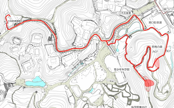 上図の赤色部分が活動した樹林です。 今年は、1/17(土)から5回の里山倶楽部で、生田緑地野鳥の森の尾根園路東側に並んだシラカシ大径木の伐採を行ってきました。 6回目の今回は、前回、伐採したものの片付けを行っていなかった材の片付け、その周囲の片付けが活動目的です。 先ずは、倒してあったシラカシを、そのままの状態で、枝落としなどの解体を行いました。